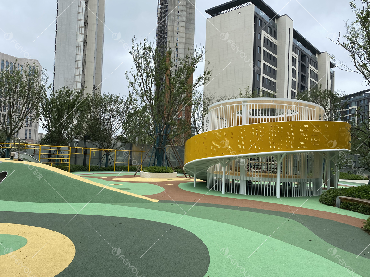 兒童景觀設(shè)施空間分為多個模塊,滑梯坡、秋千、蹦床、搖搖車、健身器材等,各式各樣的搖搖車和傳聲筒更是為孩子們在內(nèi)游玩增添了不少的樂趣。