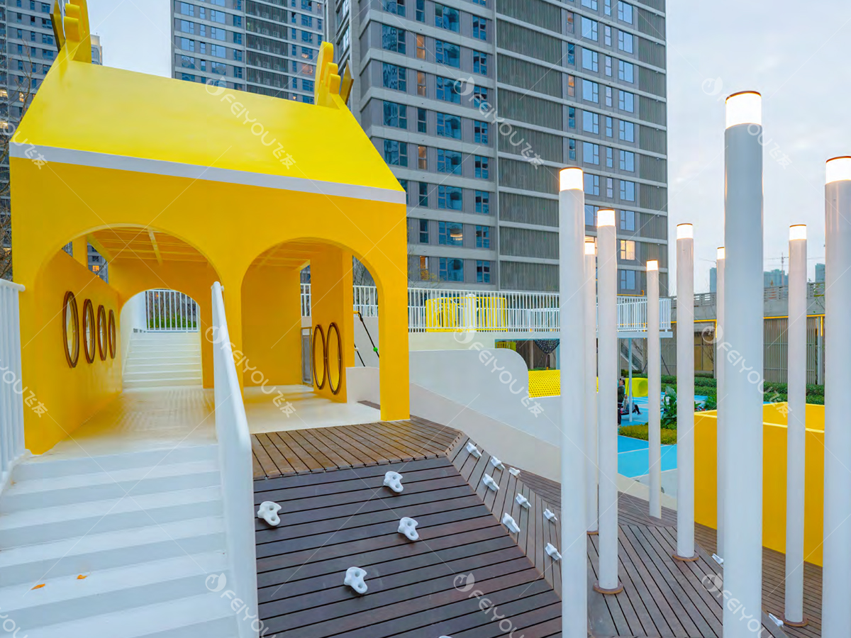 集兒童探險(xiǎn)功能為一體,具有獨(dú)特而富有故事性的外觀,包含了攀巖點(diǎn)、繩索、滑梯、爬網(wǎng)、旋轉(zhuǎn)樓梯等多種兒童項(xiàng)目。