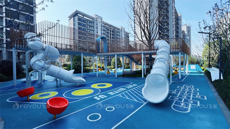雙層的童心樂(lè)園,將綠植與游樂(lè)設(shè)施完美結(jié)合,孩子們追逐打鬧的笑聲于綠蔭間環(huán)繞,愈發(fā)凸顯出時(shí)光的美好。