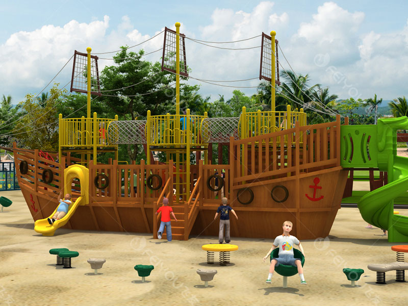 設(shè)計靈感來源于“海盜船”,場景采用了海洋元素,從原生態(tài)的角度出發(fā),使游樂設(shè)備與大自然高度融合,讓幼兒在玩耍過程中能更好的親近大自然。