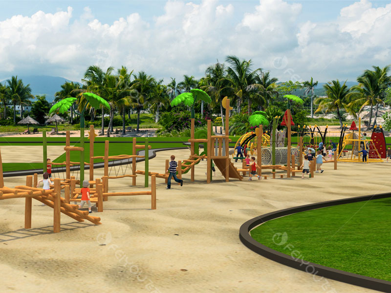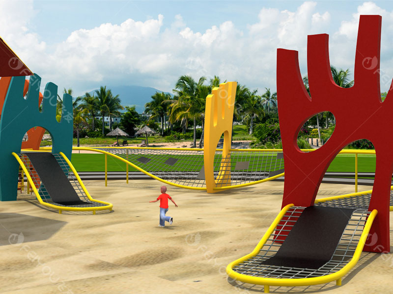 空中鳥瞰整個游樂場,如一幅美麗的畫卷。沙灘游樂設(shè)施,全木質(zhì)打造,安全、溫馨、和諧而高度統(tǒng)一。開放式游樂中心,是時下最流行的淘氣堡設(shè)備,讓兒童百玩不厭!海盜船,是本項目的核心組件,也是設(shè)計的靈感觸發(fā)處。海島上的魔幻樹屋,神秘而又充滿向往。但凡海洋元素,大鯊魚是必不可少的!