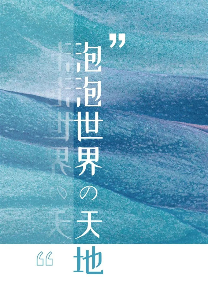 迎著飛旋的童心泡泡,我們踏入了藍色的海洋世界。海水咕嚕咕嚕吐著水泡,形成了一個白色孔洞圓圈的泡泡屋。