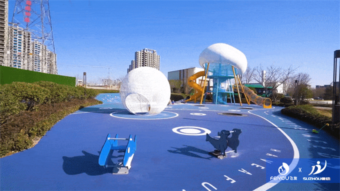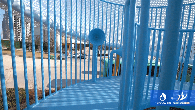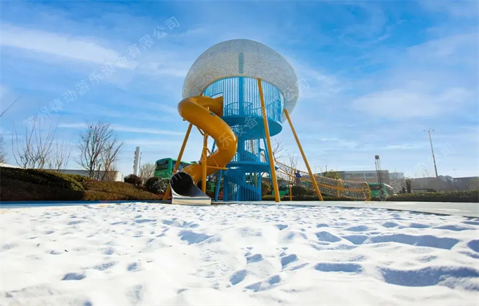它的一只觸手是小小探險家們鍛煉攀爬的小通道,越過了阻礙便可以在它白色的傘蓋下盡情玩耍。當然,孩子們也可以從它的另一只神奇的“滑梯觸手”里直接滑到地面。