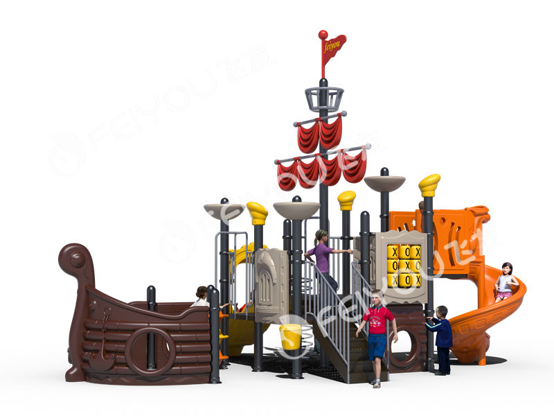 在風(fēng)起云涌的加勒比海域,有一群尚義任俠的勇士們,反抗殖民權(quán)貴,解救貧苦百姓。他們憑借堅(jiān)韌的毅力或卓越的航海技術(shù)航行在汪洋大海之中,尋找傳說中遠(yuǎn)在世界盡頭的寶藏。飛友經(jīng)典海盜船系列組合滑梯由盜船、滑梯、桅桿、繩索等部件組成,設(shè)計(jì)源于海盜船故事情節(jié)。孩子們無畏搏擊驚濤駭浪,在汪洋大海中乘風(fēng)破浪,體驗(yàn)征服大海帶來的成功喜悅!