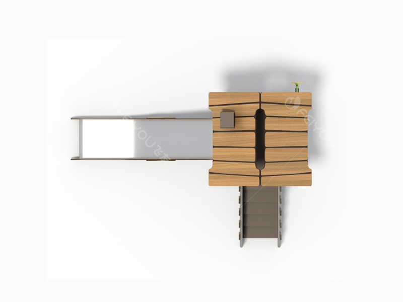 3、板材采用15mm/8mm厚HPL板,又稱抗倍特板。由多層被酚醛樹脂浸漬過的生皮紙和經(jīng)樹脂處理過的進口戶外耐候裝飾色紙,層疊高溫高壓而成,具有具強度高、耐沖擊、防水、防火、耐潮濕的特性耐老化性好,長時間在戶外使用不會產(chǎn)生退色龜裂等現(xiàn)象,經(jīng)CNC加工產(chǎn)品細節(jié)生動,規(guī)整極縣質感。其中平臺表面額外模壓防滑紋理處理,防止滑倒并更具質感。