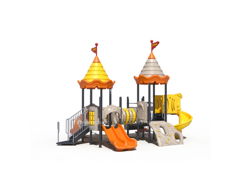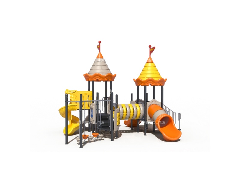| 產(chǎn)品尺寸 | FY072-01開心城堡組合滑梯 外形尺寸:971*651*520cm|使用年齡:3-12歲 |